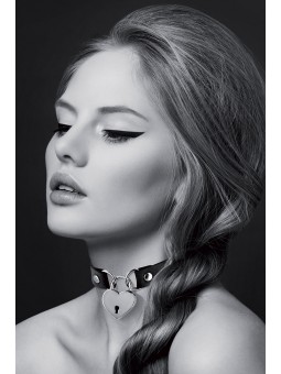 Un collier ajustable au look à la fois sexy et fetish, en simili cuir noir, avec un coeur argenté en guise de pendentif.